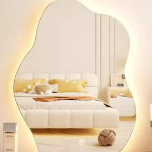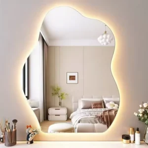 Nordic-Style Contemporary Bath Mirrors Decorative Glass Glowing Irregular Outline Frameless Framed Option for Modern Cosmetic